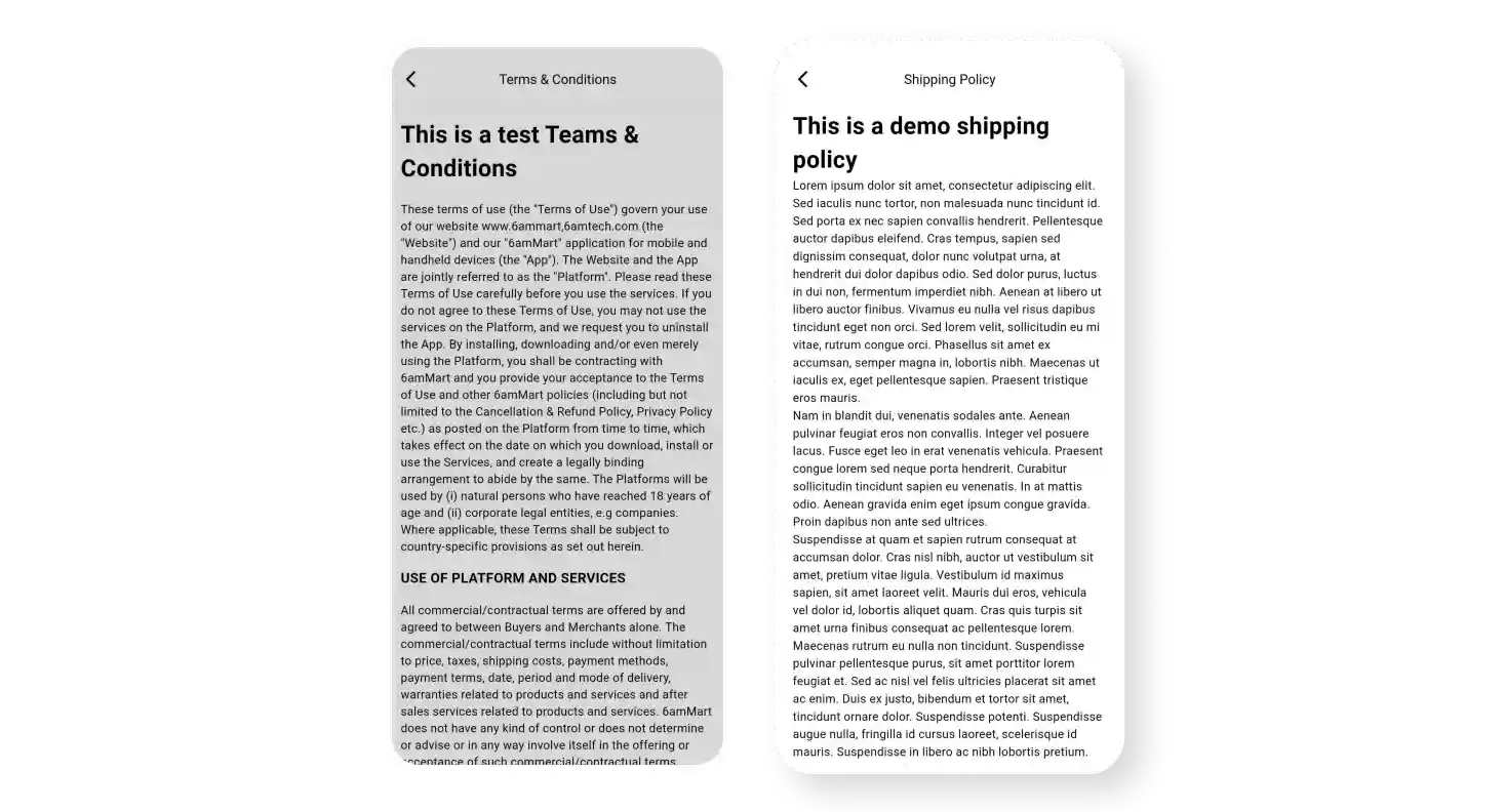 Customers can access and review the refund, cancellation, and return policies of the business through the customer app. This helps them understand and navigate the policies easily.