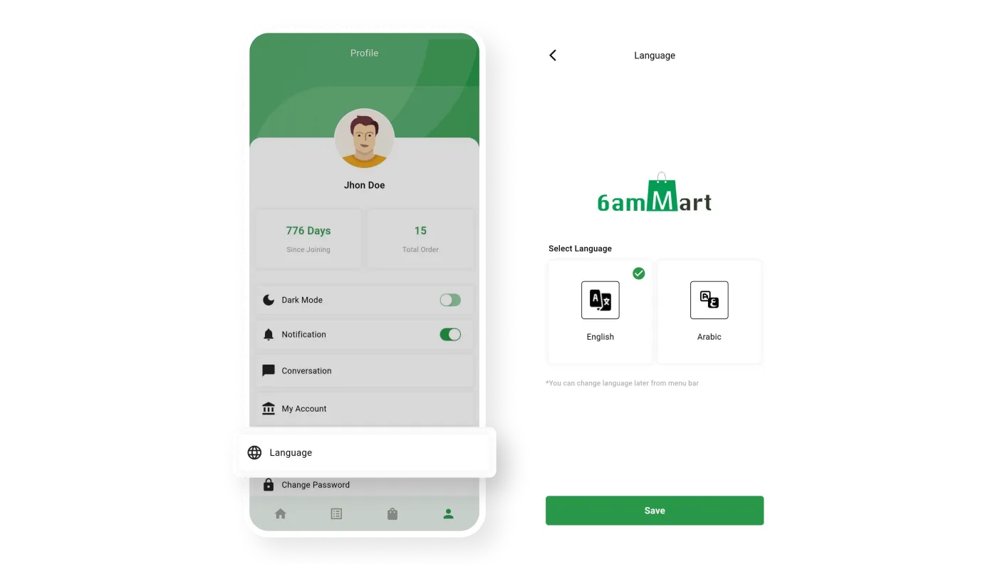 Stores can utilize the 6amMart store app in their native languages, as it supports multiple languages. This allows stores to operate in a familiar language, enhancing user satisfaction even more.